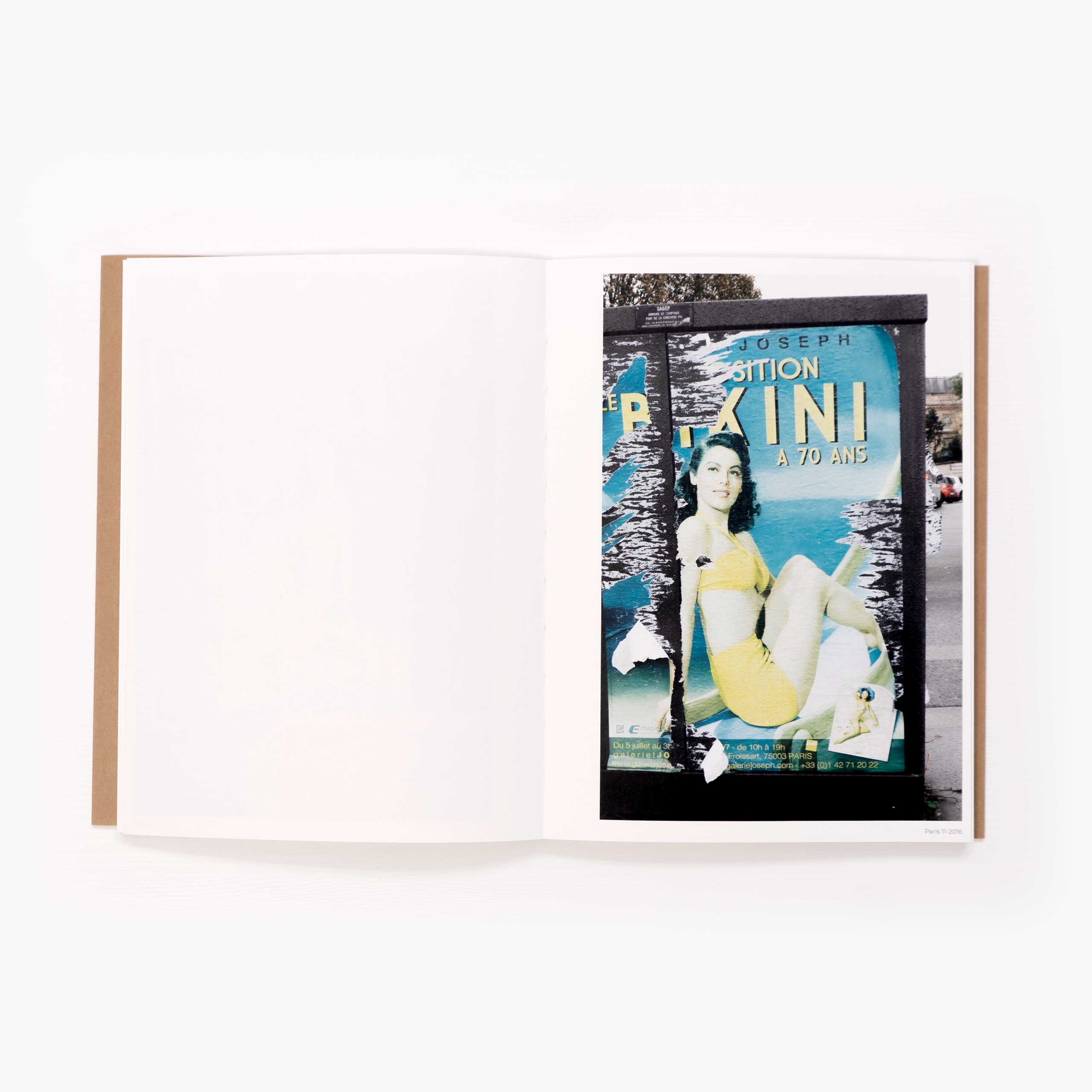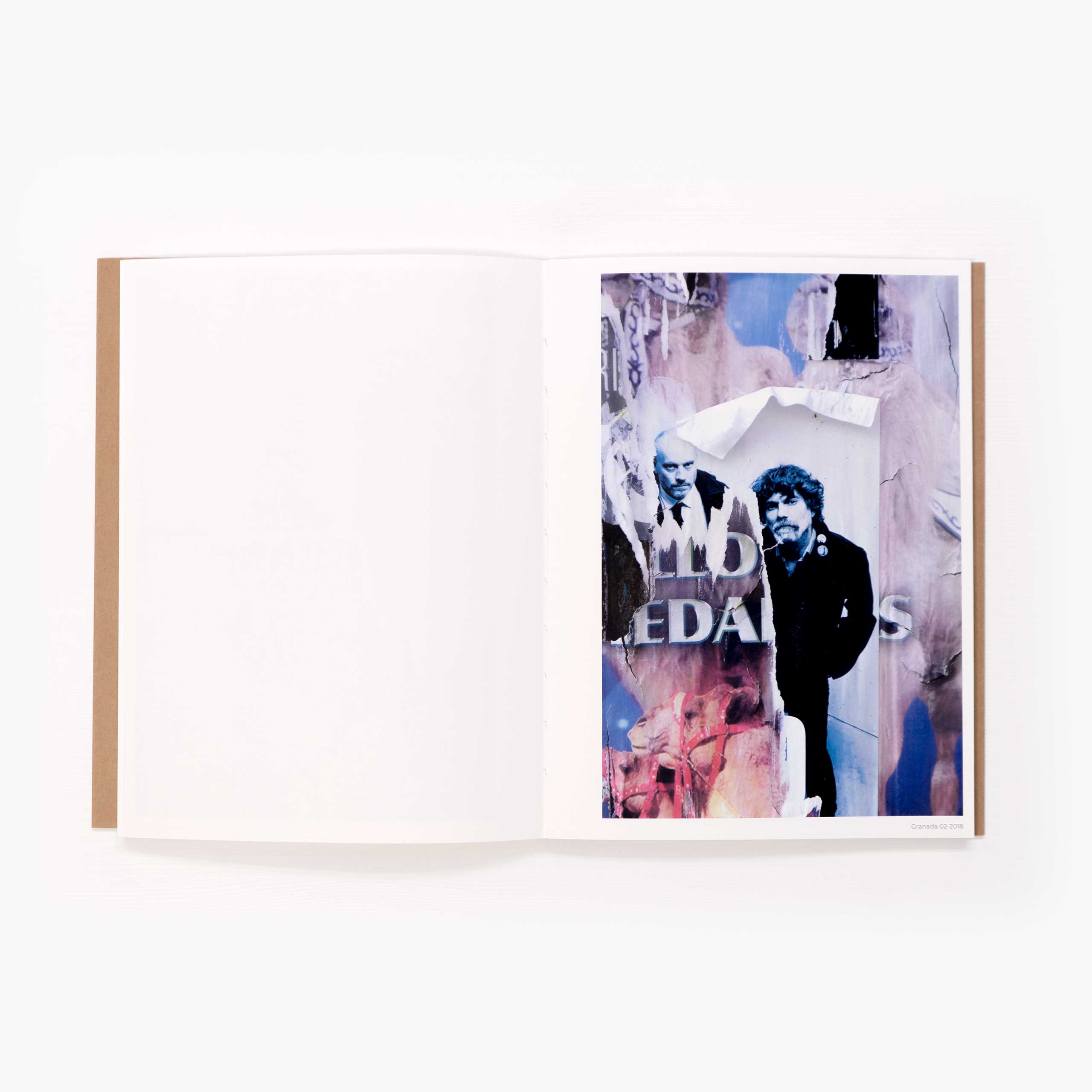 Carmen García Moreno ha paseado su mirada de fotógrafa atenta sobre la piel de la ciudad –de muchas ciudades– fijando su objetivo en los carteles que cuelgan o han colgado de sus muros y de sus espacios, recuperando la memoria que encontramos en la publicidad, descubriendo la belleza del abandono, rescatando y dando relevancia a lo que se oculta detrás de lo que vemos en la superficie, a esas imágenes obligadas a taparse unas a las otras peleando por el mismo espacio en que son expuestas. Durante varios años Carmen ha recorrido París, Madrid, Málaga, Granada o Almería con un afán casi arqueológico para reconstruir lo sucedido en cada una de ellas a través de los carteles, a través de lo que quieren decirnos cada una de las páginas del libro para que nosotros, al final de este recorrido, hayamos podido imaginar lo que nos dirían “si los muros hablaran”.Hemos visto cómo un cartel tapa al anterior formando una gruesa capa de papel y pegamento sobre fachadas, farolas y cualquier lugar susceptible de ser ocupado por la publicidad, pero es raro que nos fijemos en lo que hay debajo del nuevo afiche que alguien ha colocado allí. Tal vez quien llegó en último lugar trató de ocultar lo anterior pero dejó al descubierto parte de ese pasado porque los tamaños del papel eran distintos; o quizá un admirador del personaje retratado quiso llevarse a casa esa fotografía y al arrancarla dejó en el camino un pedazo que no logró despegar; o puede que simplemente el tiempo y la lluvia y el sol hayan hecho su trabajo y deteriorado el brillo de lo anunciado.